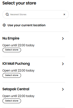 Now you'll be presented with a list of all the stores with your desired goodies in stock. Find the store you wish to collect from, double check the opening hours and then click the "Select store" button to confirm the store details and your choice.